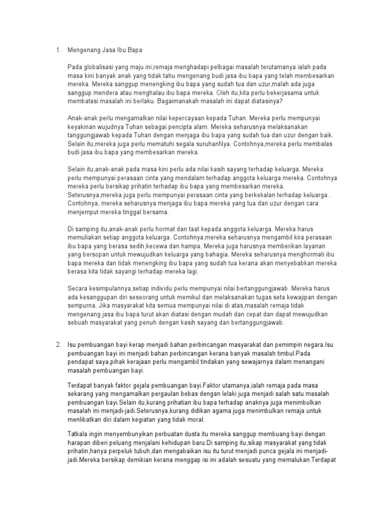 Sejak dilahirkan lagi kita dijaga oleh ibu dan bapa dengan penuh kasih sayang bagai menatang minyak yang penuh. Contoh karangan cara mengenang jasa ibu bapa. CARA MENGENANG JASA IBU BAPA.